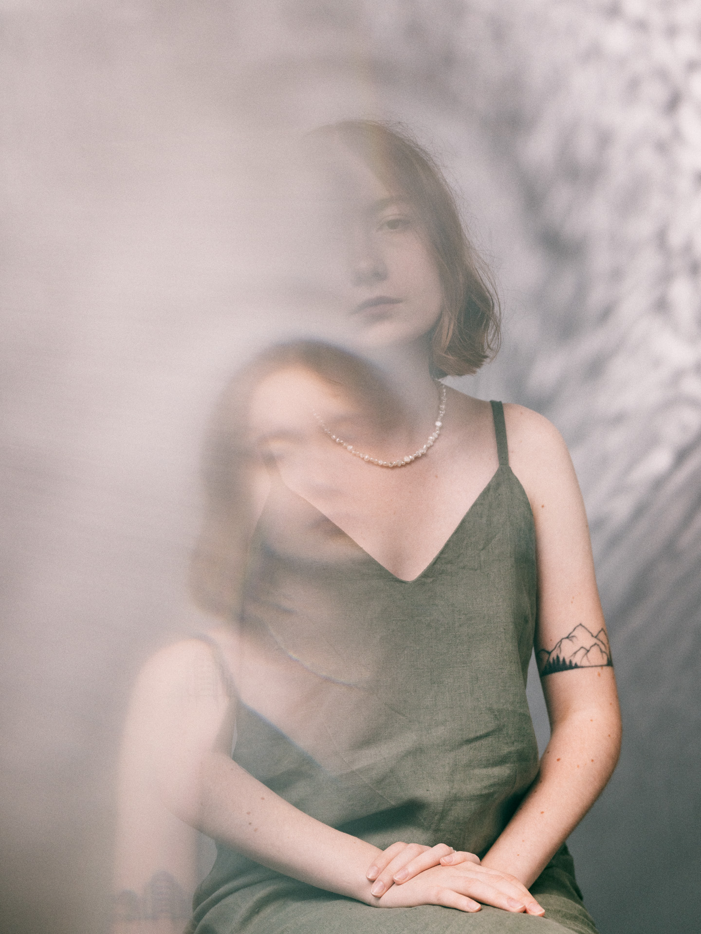 The studio became a space detached from the outside world. We sat, talked, and created photographs together. These sessions formed a time capsule, a quiet place where fragments of permanently disrupted lives could be held for a moment, before the new reality fully settled.