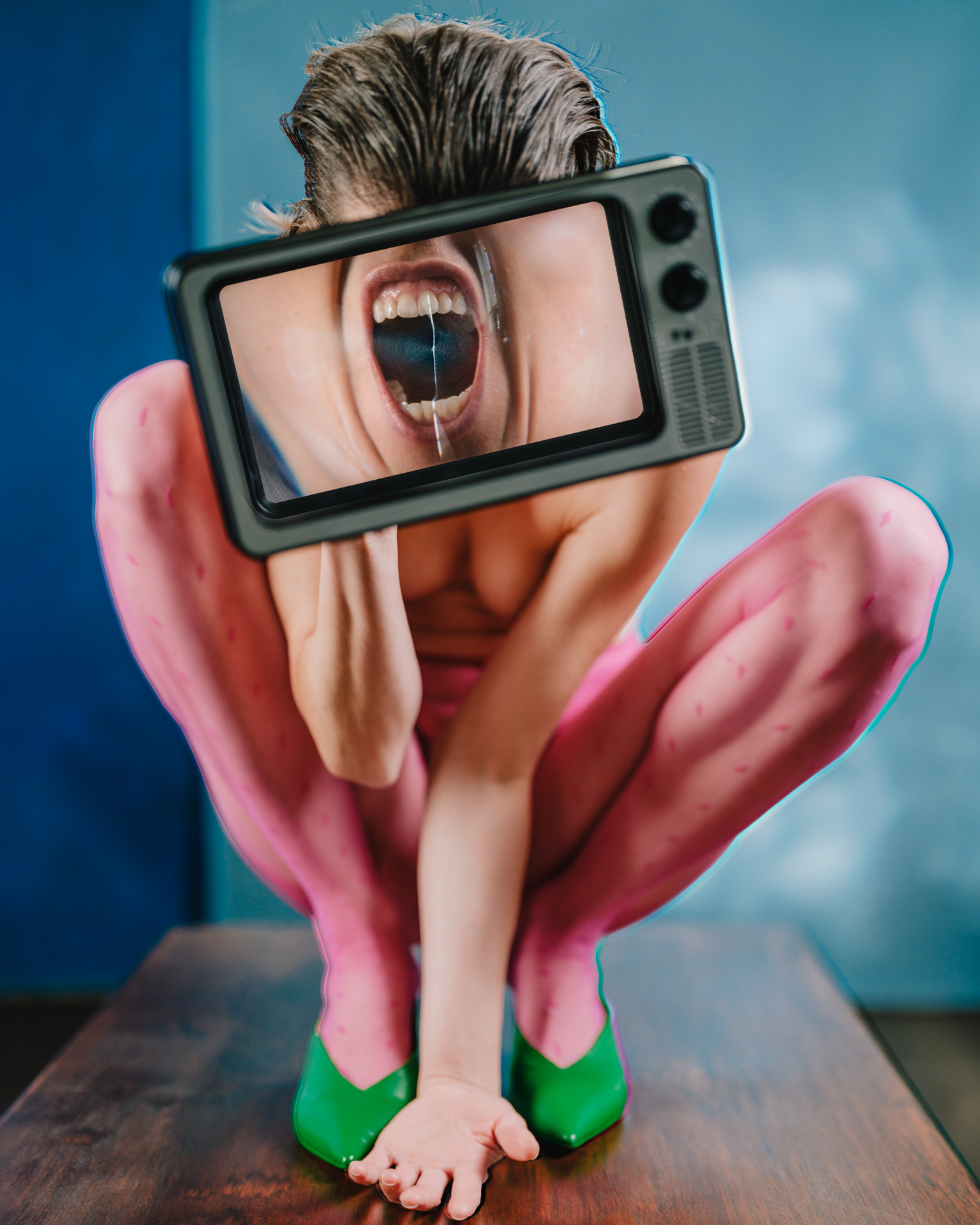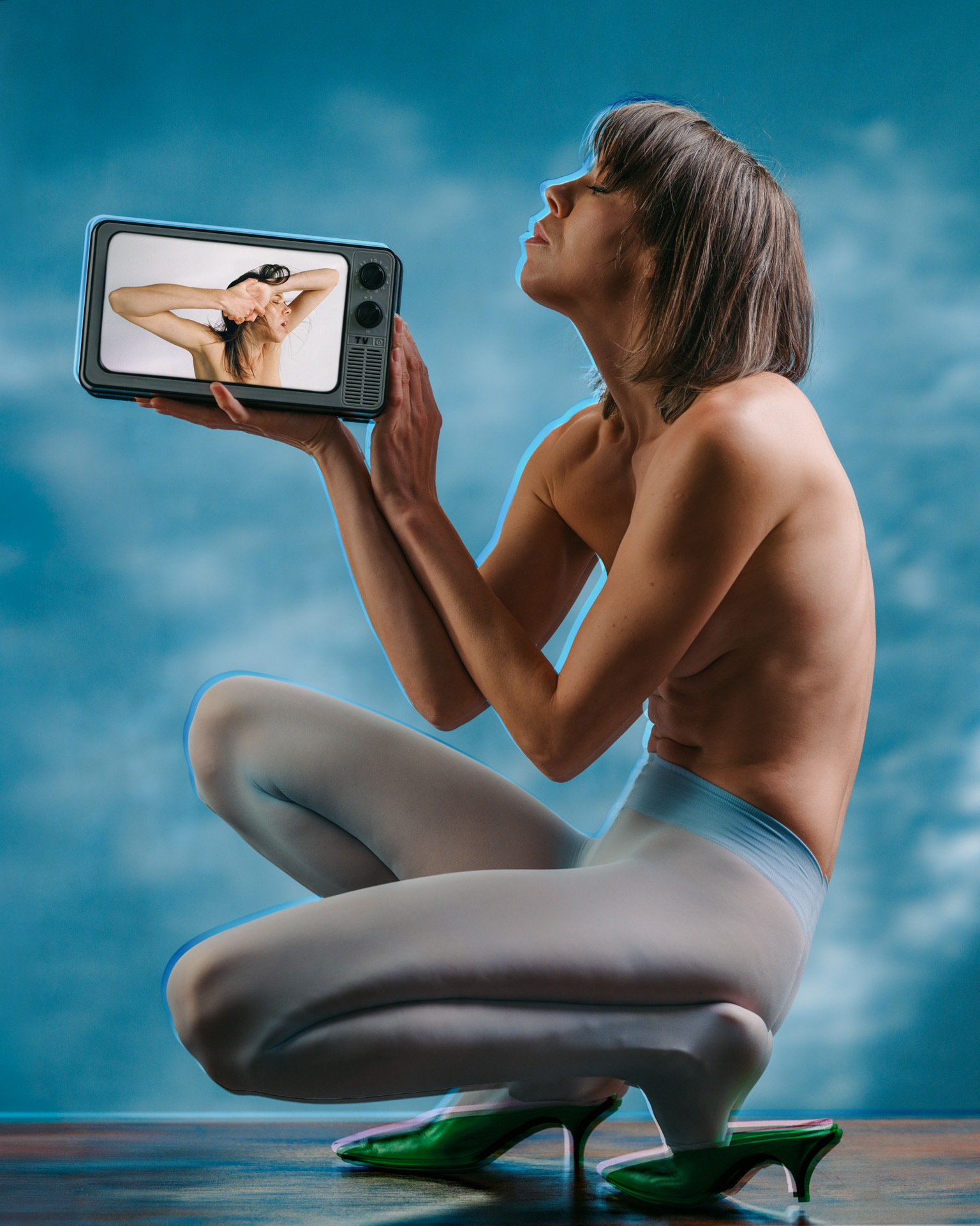 Working with models, I create staged portraits that combine my visual language with their self-presentation. The images exist between authenticity and performance, where the personal and the public overlap and the real becomes inseparable from its representation.
