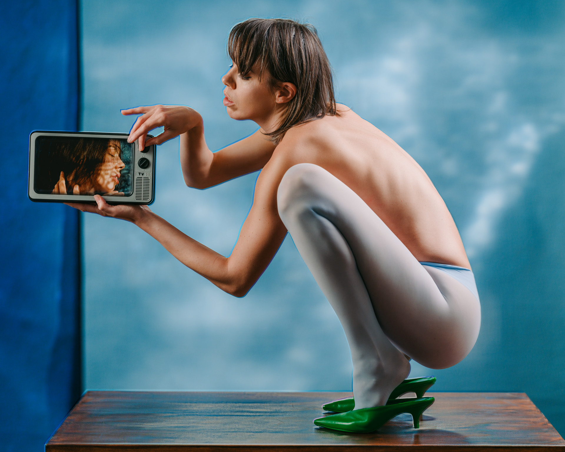 Working with models, I create staged portraits that combine my visual language with their self-presentation. The images exist between authenticity and performance, where the personal and the public overlap and the real becomes inseparable from its representation.